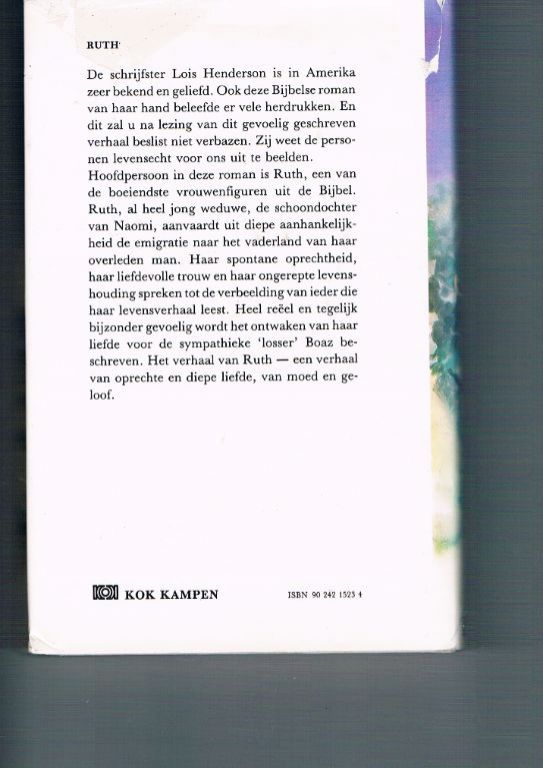 Een roman over de Bijbelse figuur Ruth. Uitg. J.H. Kok. 1986. Gekartonneerd met stofomslag. Het boek ziet er uit als nieuw, maar de stofomslag heeft aan de achterzijde bovenaan 2 scheurtjes. 216 pagina's. Dikte 2,3 cm. Gewicht 341 gram. Verzendkosten vanaf € 3,95 Prijs € 2,95.