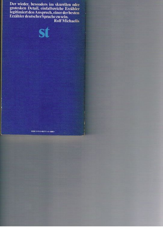 Uitg. Suhrkamp. 1978. Pocket. 250 pagina's. Kennelijk met handtekening van de schrijver. Verschillende verhalen. Praktisch nieuwstaat. Gewicht 175 gram. Prijs € 4,95. Verzendkosten vanaf € 3,95.
