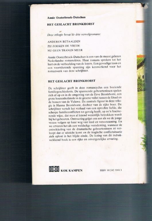 Uitg. Kok. 1973. Gekartonneerd met stofomslag. Deze heeft in de loop der jaren een paar mm transportschade opgelopen. Verder praktisch nieuwstaat. 644 pagina's. ikte 5,5 cm. Gewicht 746 gram. Dit boek bevat de volgende verhalen: Anderen betaalden, Zij zoeken de vrede, Nu geen tranen meer. Prijs € 6,95. Verzendkosten vanaf € 5,--.