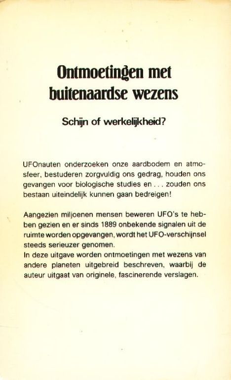 In deze uitgave worden ontmoetingen met wezens van andere planeten uitgebreid beschreven, waarbij de auteur uitgaat van originele en fascinerende verslagen.