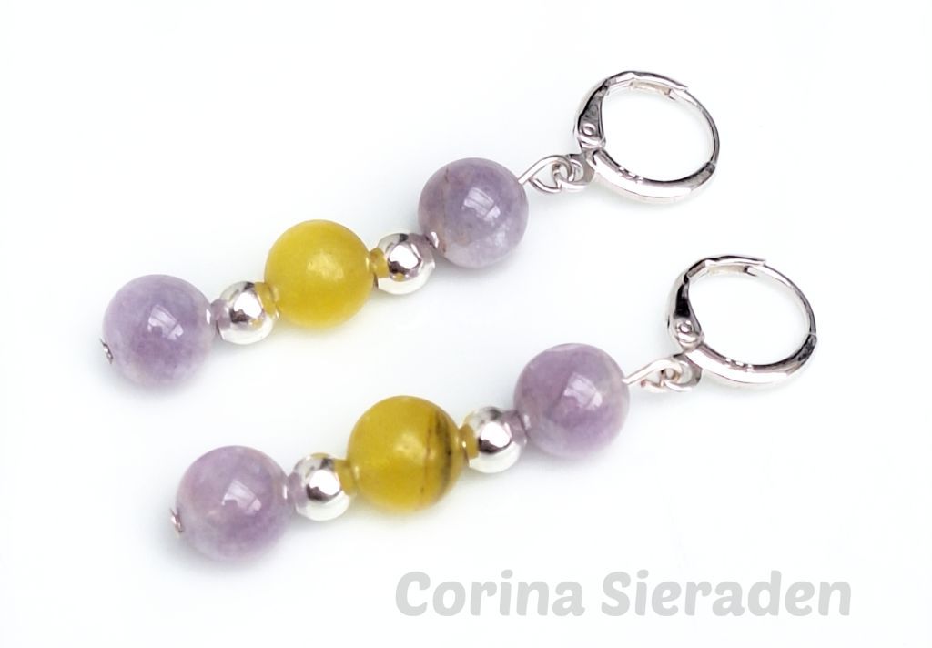 CORINA SIERADEN Sterling zilveren oorringen met agaat, angeliet en zilverkleurige spacers.