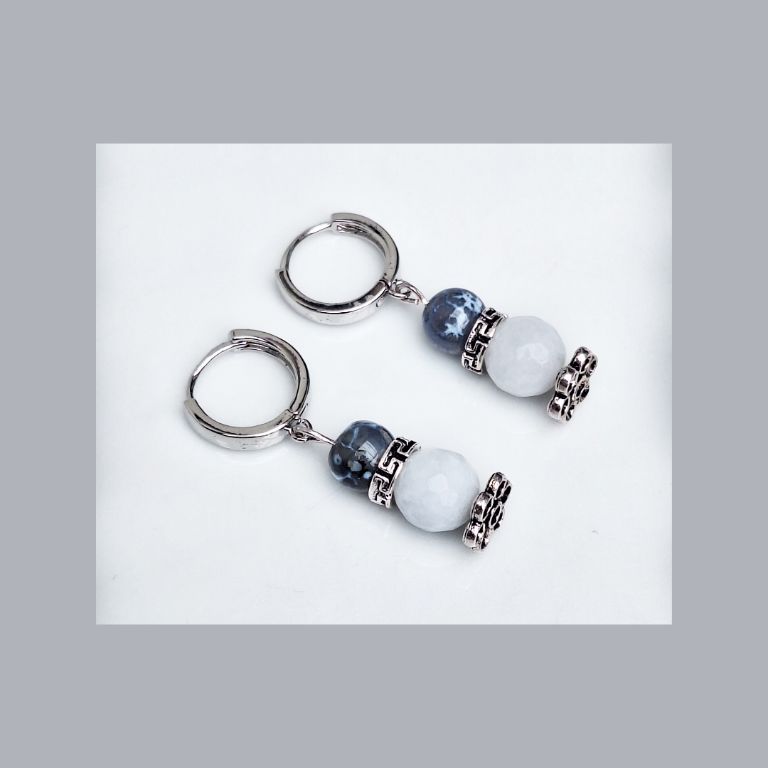CORINA SIERADEN Sterling zilveren oorringen met agaat, angeliet en zilverkleurige spacers. Lengte: 5 cm.