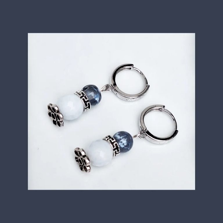CORINA SIERADEN Zilveren oorhangers met chalcedoon en tibetaans zilver.