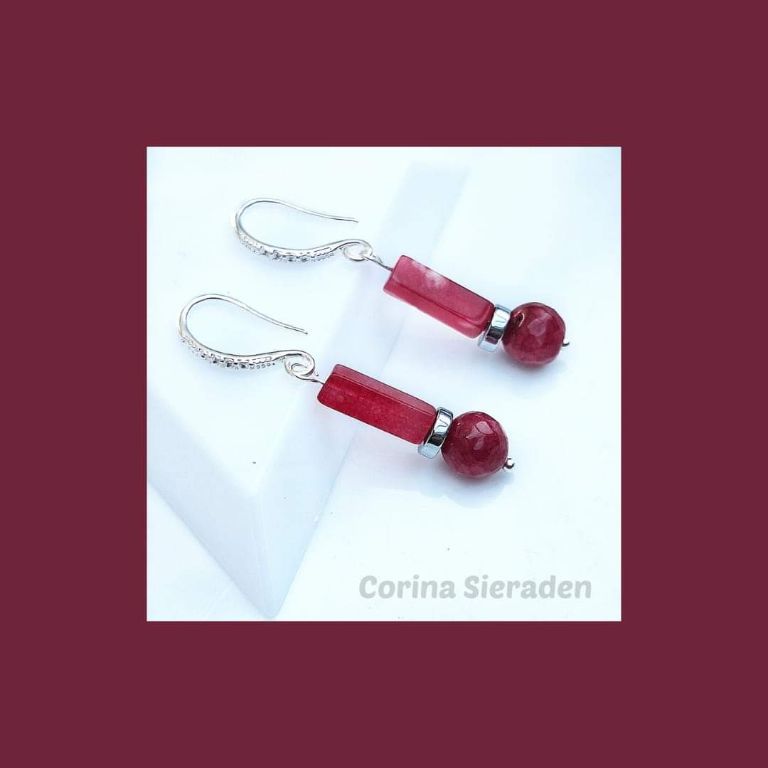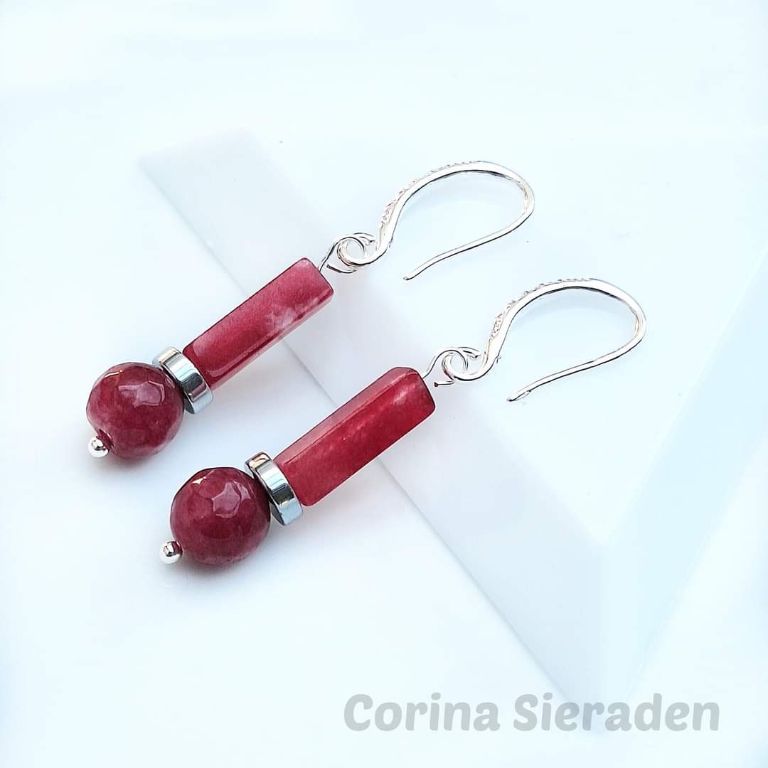 CORINA SIERADEN Elegante, messing oorringen met rode jaspis (8 en 10 mm) en messing spacers. Voor elke dag én voor speciale gelegenheden. Lengte: 3,5 cm.