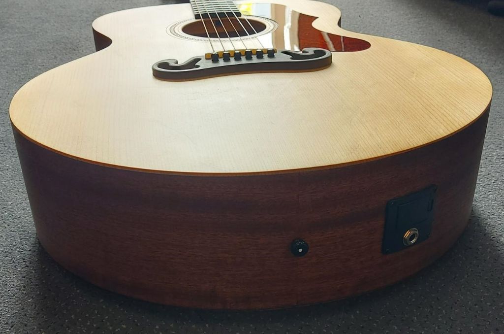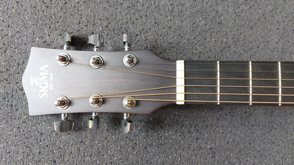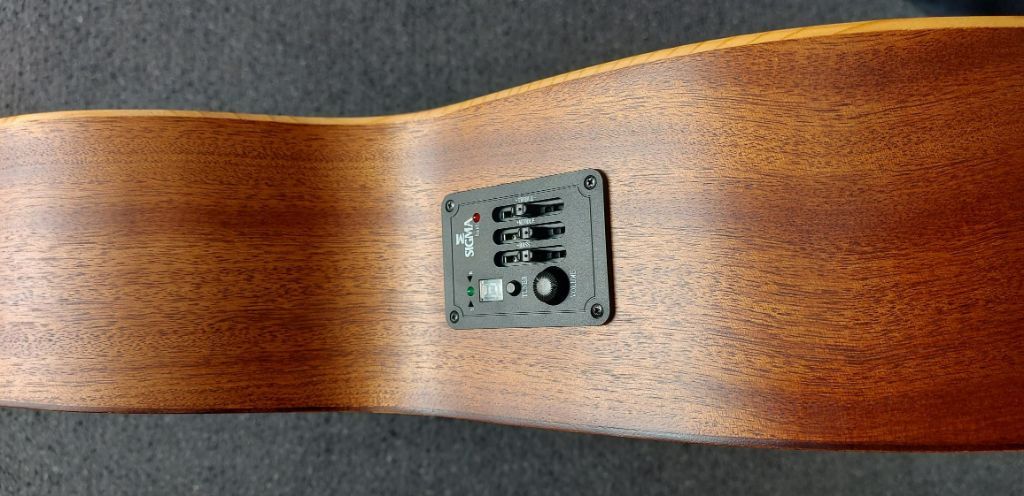 Sigma GMCE-1+ Modern Series Mahonie Natural ElectroBody: Grand OM-14 Fret, cutaway Bovenblad: Massief Sitka spruce Rug en zijkanten: Blackwood Australien Hals: Mahonie Topkam: Been, 44,5 mm Brugkam: Been compensated Toets : Micarta ...