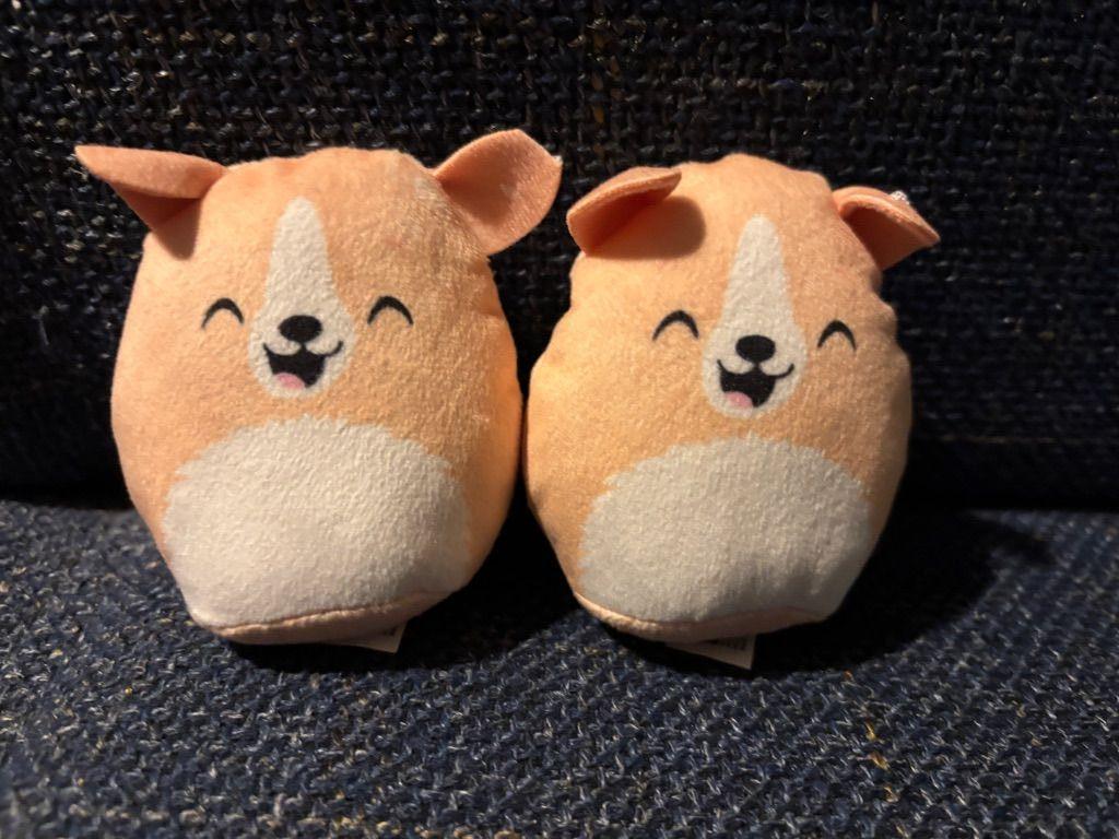 Original Squishmallows 2 stuks oranje wit knuffel 8 cm.