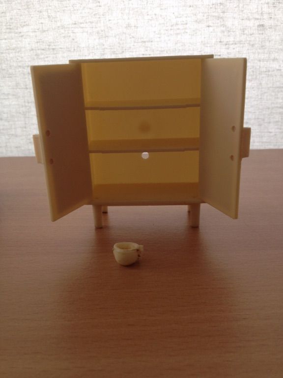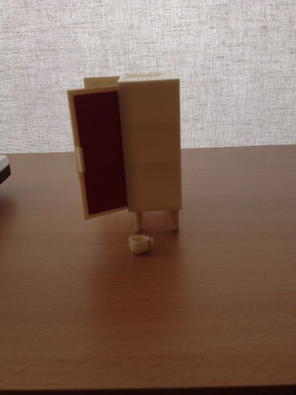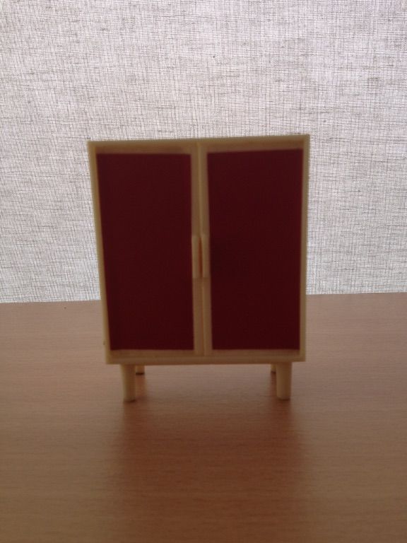 Van rood wit kunststof met 2 deuren en 4 pootjes.