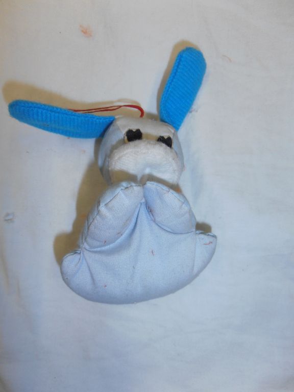 Het hondje kan op zijn rug of op zijn buik liggen. Waarom de achterpoten niet goed zijn verwerkt: geen idee. Lengte ca. 10 cm. Breedte ca. 9 cm, afhankelijk waar je gaat meten. In vrij goede staat. Verzendkosten vanaf € 4,50. Prijs € 1,95.