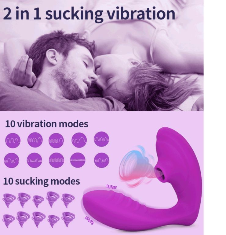 sensationele vibrator- twee in een . met maar liefst 10 zuigende + 10 trillingen + wearable Frequenties. Leverbaar in 3 kleuren rood, donker paars en licht paars. Belangrijkste kenmerken: Waterdicht: ja