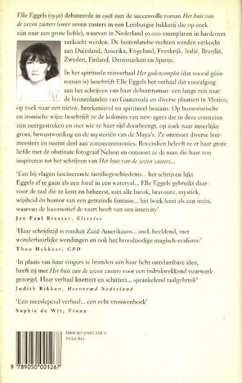 In het spirituele reisverhaal Het godencomplot (dat vooral geen roman is) beschrijft Elle Eggels het verhaal dat voorafging aan het schrijven van haar debuutroman: een lange reis naar de binnenlanden van Guatemala en diverse plaatsen in Mexico, op zoek naar een nieuw, betekenisvol en spiritueel bestaan.