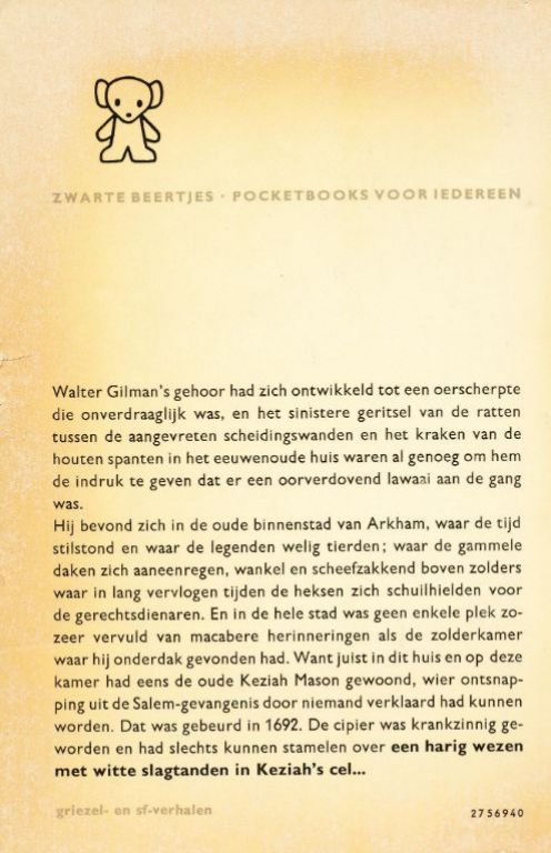 Walter Gilman's gehoor had zich ontwikkeld tot een oerscherpte die onverdraaglijk was, en het sinistere geritsel van de ratten tussen de aangevreten scheidingswanden en het kraken van de houten spanten in het eeuwenoude huis waren al genoeg om hem de indruk te geven dat er een oorverdovend lawaai aan de gang was.