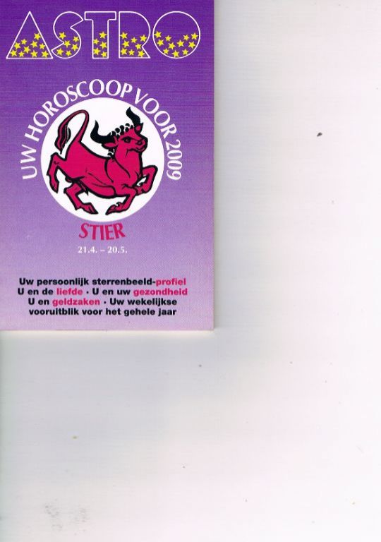 24.10 – 22.11. Merk Astro. Geniet boekje. Formaat 8,5 x 13 cm. 66 pagina's. Nieuwstaat. Dikte 4 mm. Gewicht 29 gram. Verzendkosten zonder track & trace vanaf € 1,92. Met track & trace en steviger verpakking vanaf ...