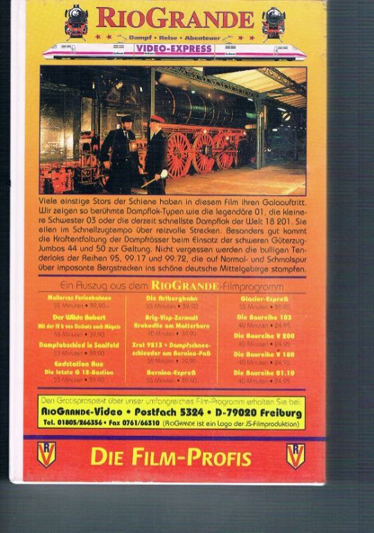 Uitg. RioGrande. Video VHS. Duitse taal. Voor liefhebbers van treinen en modelspoorwegbouw. In zeer goede staat. Met een dun velletje pakpapier kan hij door de brievenbus voor € 3,95. Voor een betere verpakking is de porto vanaf € 4,50. Prijs € 17,50.