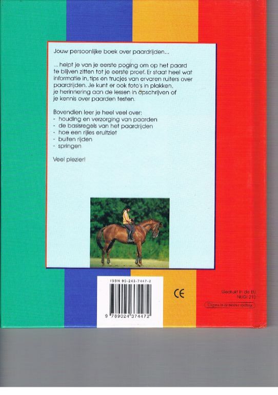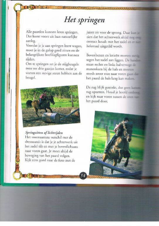 Door Margriet Hampe en Elke Stickeler. Uitg. Deltas. 1999. Gekartonneerd (ik zie wel katerntjes, maar geen binddraad). 68 pagina's op zwaarder papier. Voorzien van talrijke kleurenfoto's. Nieuwstaat. Uitstekend boek voor kinderen, die met paarden willen leren om te gaan. Dikte 1 cm. Gewicht 446 gram. Prijs € 12,95. Verzendkosten vanaf € 4,35.