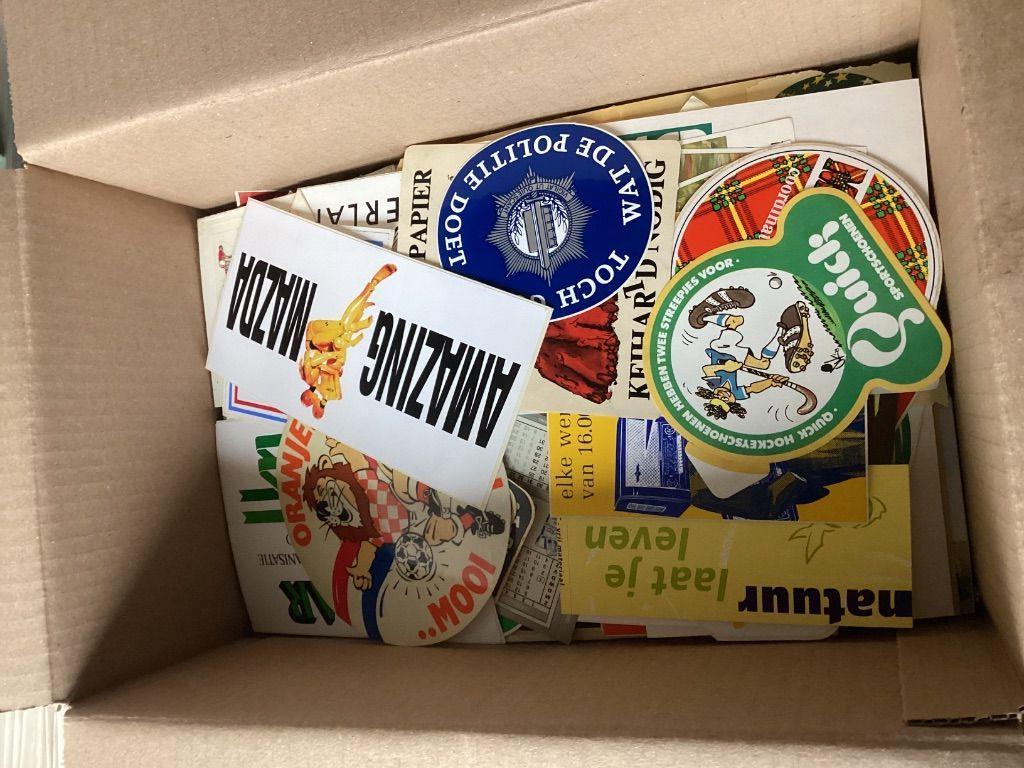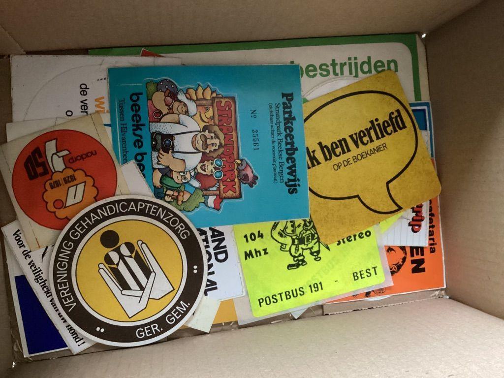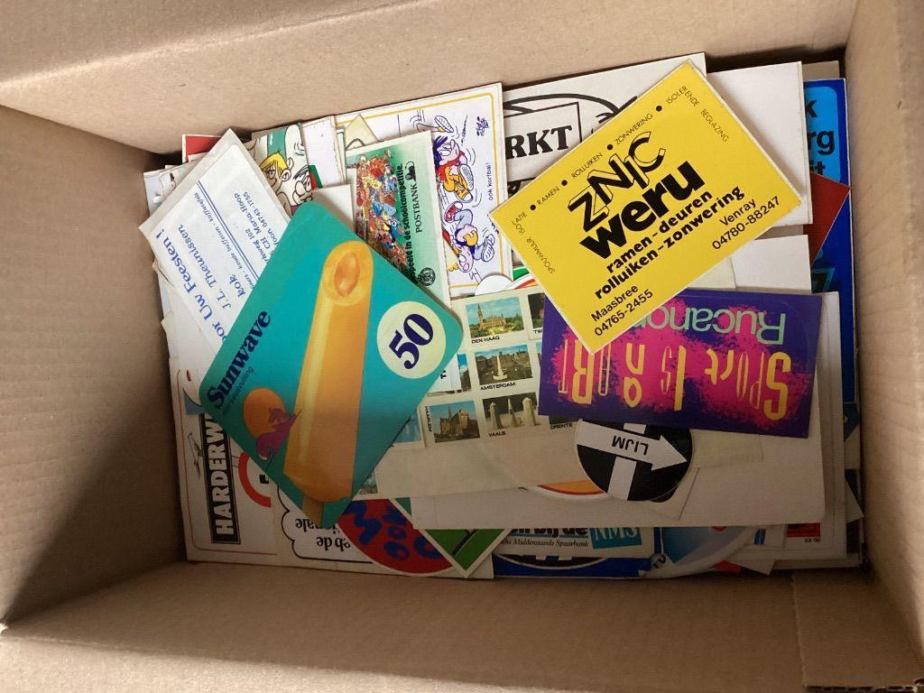doos met inhoud weegt totaal circa 3 kilo. Er zitten ook wat dubbele stickers tussen. Prijs is €20,00 exclusief verzendkosten (pakketpost PostNL of DHL).