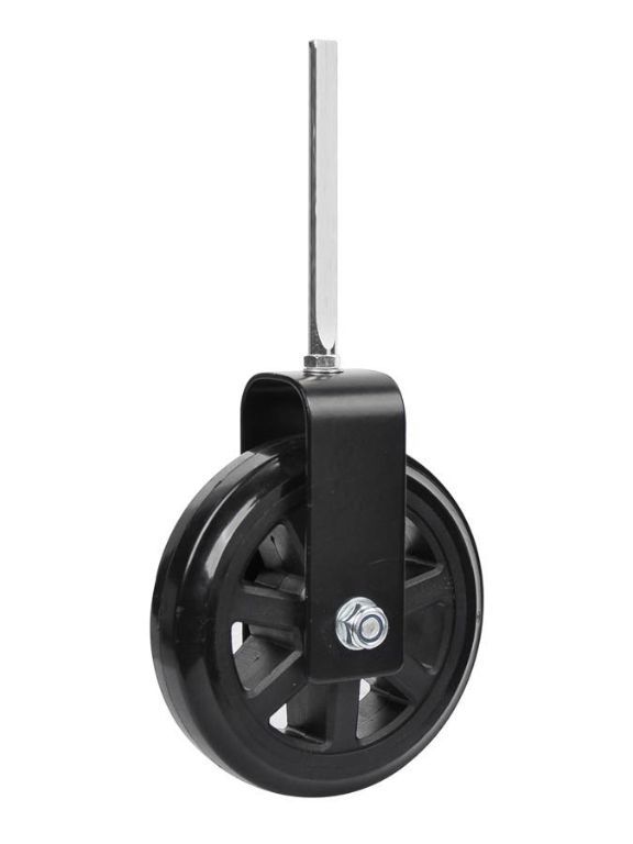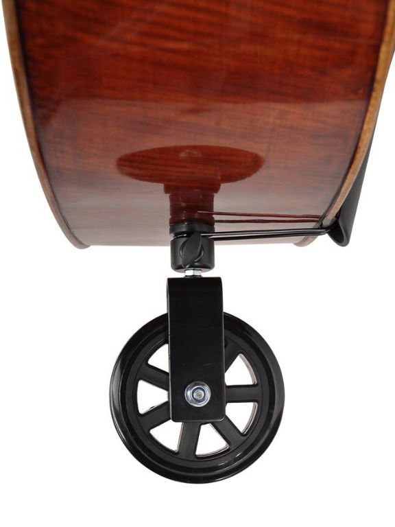 Contrabaswiel ter vervanging van de pin om de bas rollend te kunnen vervoeren