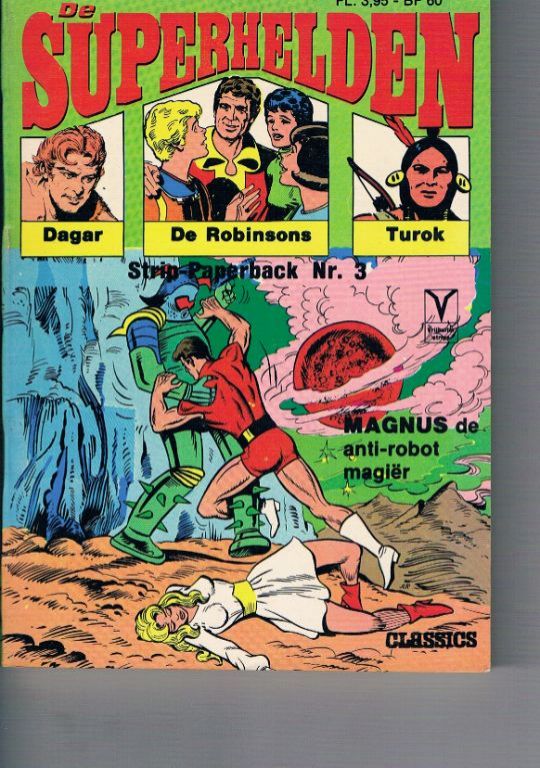Op cover staat: strip-paperback nr. 3. Uitg. De Vrijbuiter. 1976. Formaat 13,3 x 18,6 cm. 194 pagina's. Dikte 1,3 cm. Gewicht 179 gram. Ongelezen. Op een kreukje rechtsonder na, in nieuwstaat. Verzendkosten vanaf € 3,64. Prijs € 9,95.