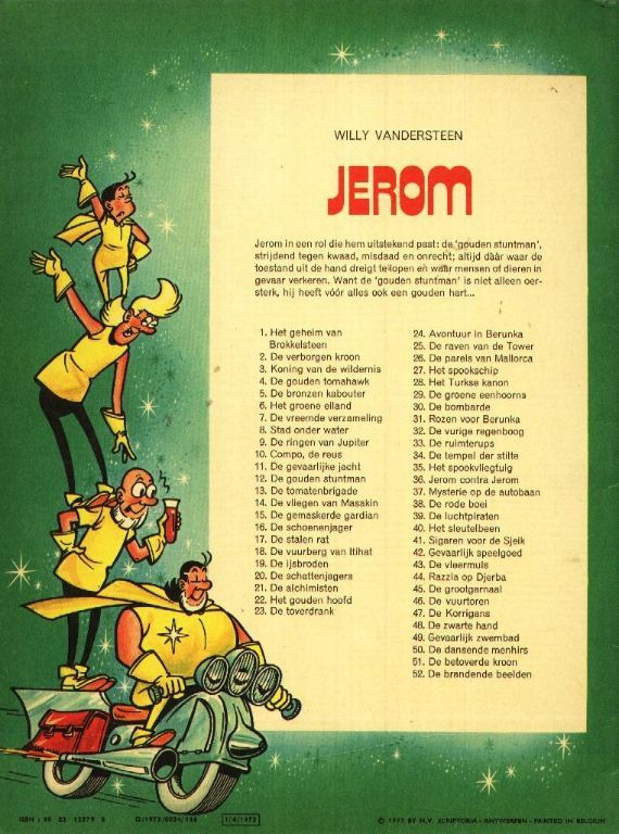 Jerom in een rol die hem uitstkend past: de 'gouden stuntman', strijdend tegen het kwaad, misdaad en onrecht; altijd daar waar de toestand uit de hand dreigt te lopen en waar mensen of dieren in gevaar verkeren.