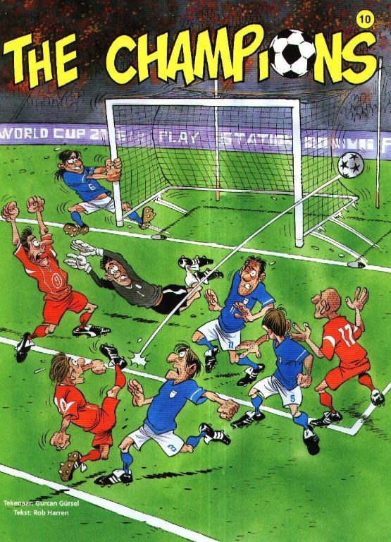 Een stripboek met korte hilarische verhaaltjes waarin gebeurtenissen op en rondom het voetbalveld op de korrel worden genomen.