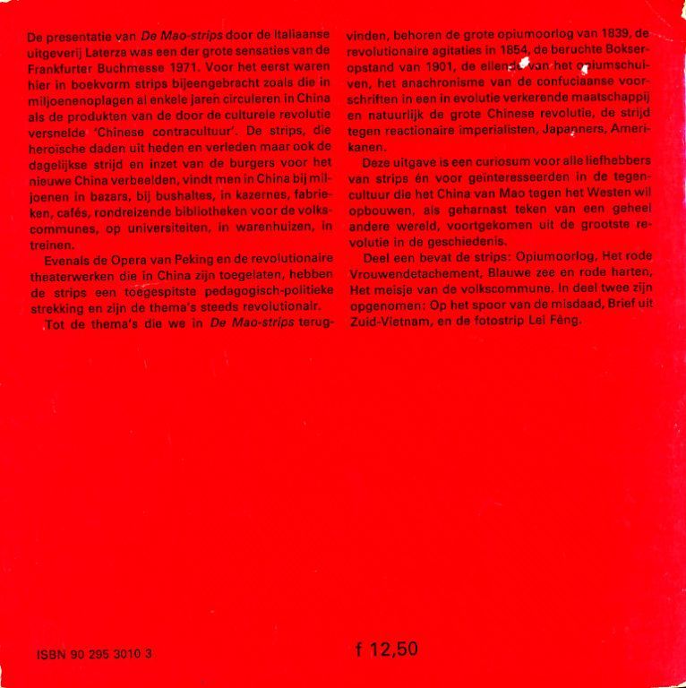 Deze uitgave is een curiosum vooralle liefhebbers van strips en voor geinteresseerden in de tegencultuur die het China van Mao tegen het Westen wil opbouwen, als geharnast teken van een geheel andere wereld, voortgekomen uit de grootste revolutie in de geschiedenis.