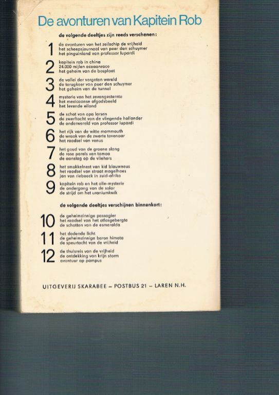 Hierin opgenomen de volgende verhalen: nr. 1 – De avonturen van het zeilschip De Vrijheid nr. 2 – Het scheepsjournaal van Peer den Schuymer nr. 3 – Het pinguïnland van professor Lupardi Zevende druk, 1972. ...