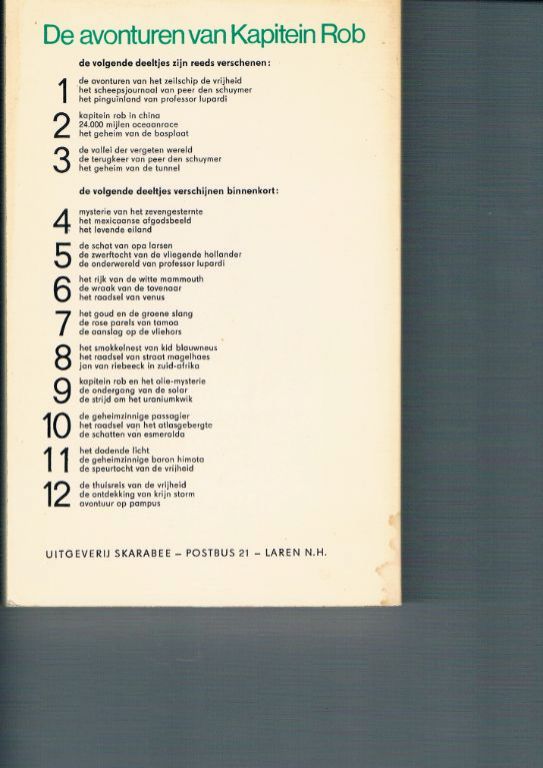 Hierin opgenomen de volgende verhalen: nr. 22 – Het smokkelnest van Kid Blauwneus nr. 23 – Het raadsel van Straat Magelhaes nr. 24 – Jan van Riebeeck in Zuid-AfrikaEerste druk. 1969. Paperback. 226 pagina's. Praktisch ...