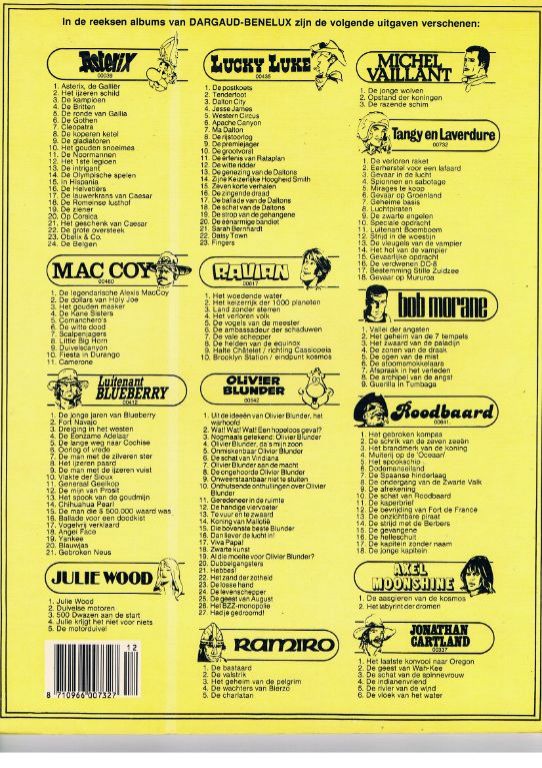 Uitg. Dargaud Benelux. 1984. Deel 12. Ziet er uit als nieuw, maar heeft op de voorzijde een schade van een verwijderde sticker. Gewicht 165 gram. Verzendkosten vanaf € 3,95. Combineren is handig. Prijs € 3,50.