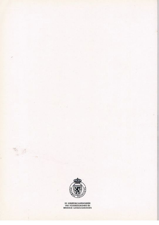 Uitgave door de Gemeenschapsminister van Volksgezondheid en Brusselse Aangelegenheden. 1989. SC. 32 pagina's. Beperkte oplage. In de loop der tijd heeft het boek hier en daar een deukje en een kreukje opgelopen; waarschijnlijk door transport. Gewicht 122 gram. Verzendkosten vanaf € 3,64. Prijs € 17,95.