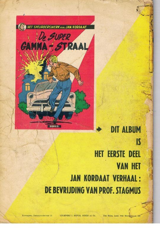 Eerste druk 1956. SC. Dit boek is niet moeders mooiste. Bij voor- en achterkaft mist een hoekje. Voorkaft met scheurtje. Kreuken voor en achter. Rug opnieuw gelijmd, vertoont sporen van tape. Boekblok ziet er vrij goed uit. Pagina drie/vier (titelpagina plus inhoud van het vorige boek) is een kleurenkopie. In nieuwstaat noteert Matla 375 gulden en de experts van Catawiki € 120,--. In deze staat ben ik tevreden met € 19,95. Gewicht 161 gram. Verzendkosten vanaf € 3,95.