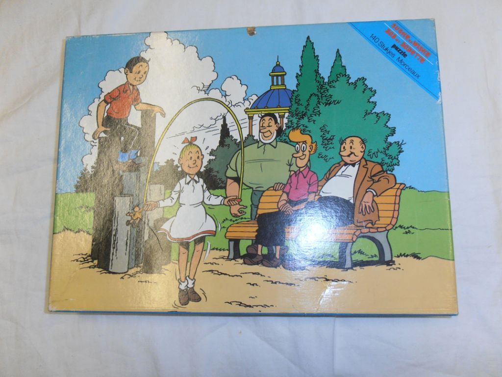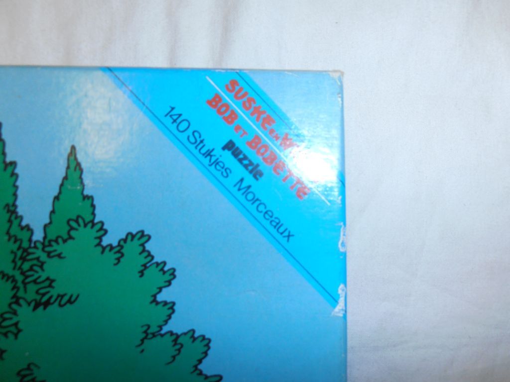 Deze variant is te herkennen aan een diagonaal blauw vlak rechtsboven op het deksel met daarop de rode tekst “Suske en Wiske – Bob et Bobette, Puzzle, 140 Stukjes Morceaux”.