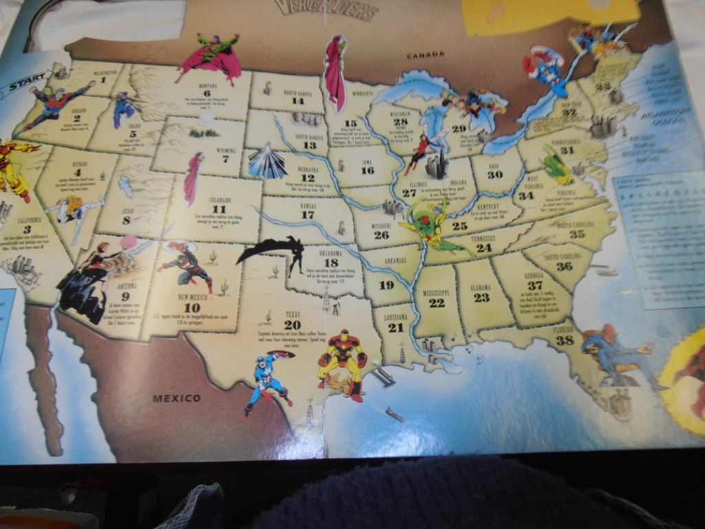 Er zijn 6 verschillende spellen aanwezig: Spiderman, Fantastic Four, De X-Mannen, Wolverine, De Vergelders, The Incredible Hulk. Elk met zijn eigen tegenstanders. Elk spel heeft een formaat van 2x40 bij 58 cm. I.v.m. het afwijkende formaat is het spel voor mij wat lastig om het spel goed op te bergen.Ik verlaag de prijs daarom naar € 12,50. Verzendkosten vanaf € 4,95.