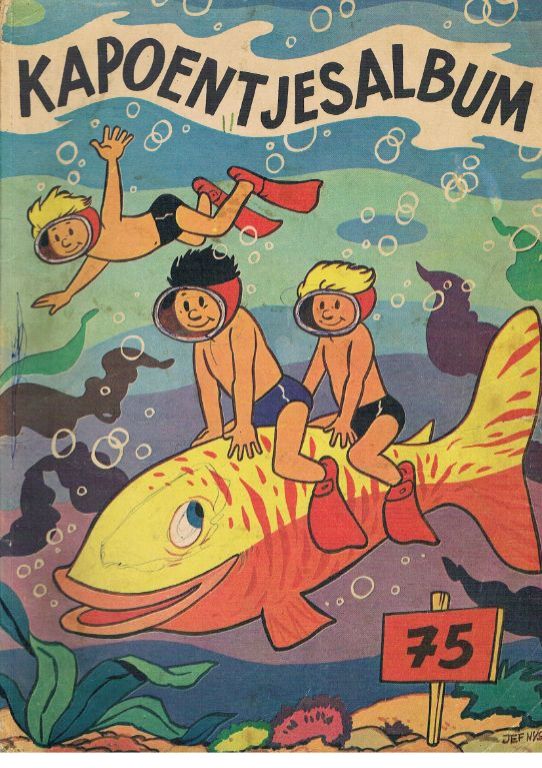 Inhoud 't Kapoentje nr. 75: nr. 28 d.d. 13.07.1966 t/m nr. 36 d.d. 07.09.1966. Dus 9 nummers. Elke aflevering telt in principe 16 pagina's met strips, losse verhalen, spelletjes en puzzels. Puzzels kunnen zijn ingevuld, kleurplaten gekleurd etc. Scheurtje in rug onder van 1 cm; boven ook, maar is bovendien een stukje papier weg. Twee scheurtjes horizontaal in midden cover van 1 tot 1,5 cm. Krabbels op binnenzijde achtercover. Diverse kreukels cover; klein beetje op achtercover. Op de voorzijde van 't Kapoentje nr. 28, 29 en 33 zijn de letters “Kapoentje” nog eens extra ingevuld. Ook zijn letters soms ingevuld bij De Familie Nopjes en sommige andere verhalen. In nr. 28 staan op pagina 4 wat krabbels en op pagina 5 wat korte teksten en verwijzingen. Ergens 2 x een klein stukje papier afgescheurd; het houthoudende papier is ook niet zo sterk. Verder vrij netjes. Gewicht 273 gram. Verzendkosten vanaf € 3,95. Prijs € 4,95.