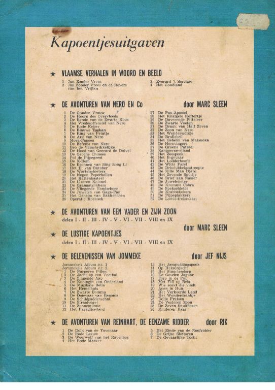 Inhoud 't Kapoentje nr. 30 van 31.07.1963 t/m nr. 42 d.d. 16.10.1963. Dus 13 nummers. Elke aflevering telt in principe 16 pagina's met strips, losse verhalen, spelletjes en puzzels. Puzzels kunnen zijn ingevuld, kleurplaten ...