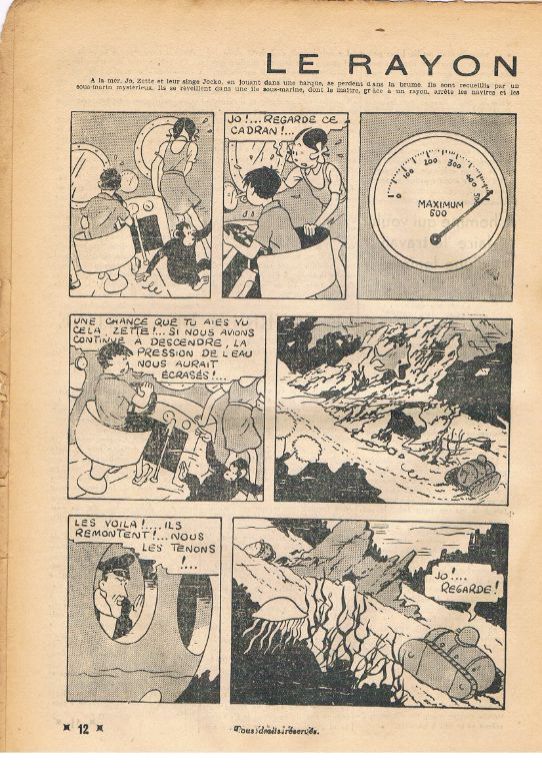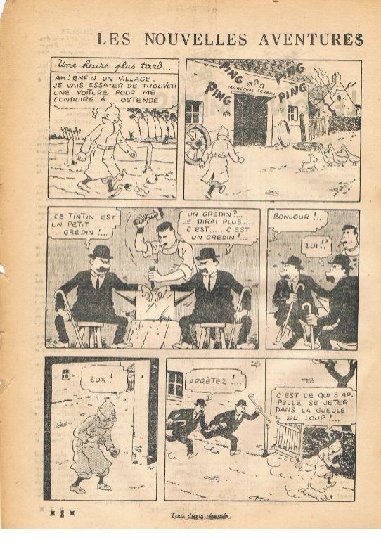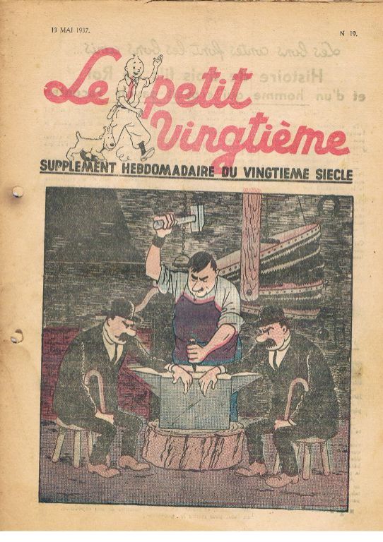 Met o.a. 2 pagina's Le rayon du Mystere en 2 pagina's Les nouvelles aventures de Tintin et Milou. Ongekleurd. Het boekje is in redelijk goede staat. Links 2 perforatie gaatjes. Wat rafeltjes; zie ook mijn opmerkingen bij nr. 14 van 08.04.1937. De rug gaat ook slijten. Voor ca. 85 jaar oud vind ik het meevallen. Gewicht ca. 28 gram. Prijs voor dit zeldzame boekje € 75,--. Verzendkosten in overleg.