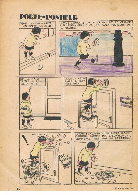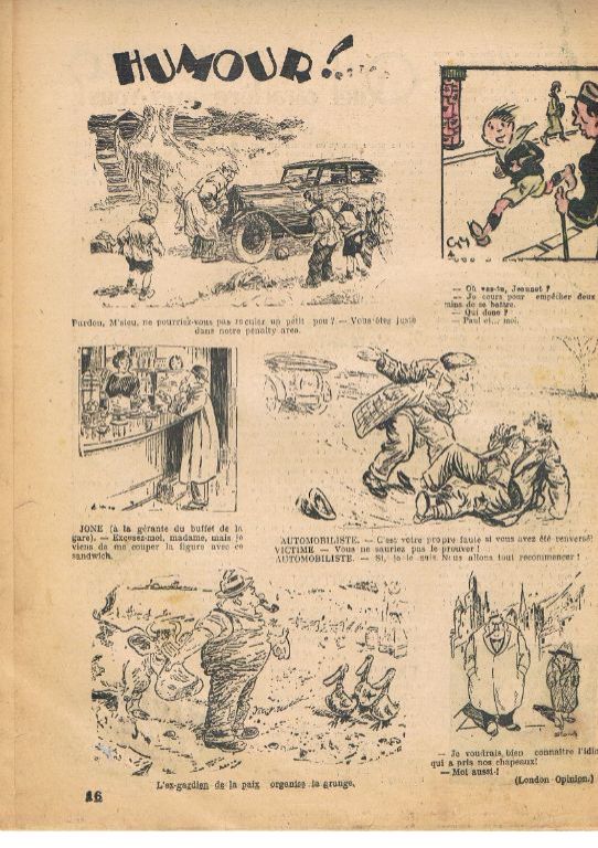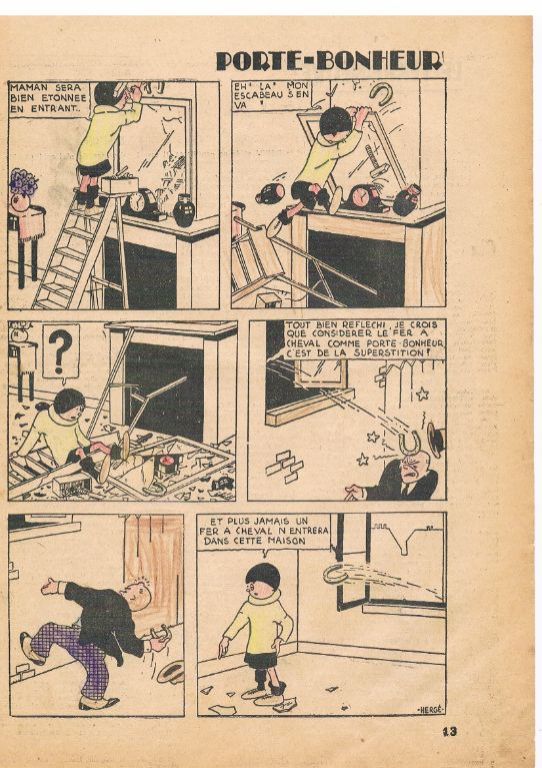 Met o.a. 2 pagina's Tintin au pays des Soviets en 2 pagina's Quick et Flupke. Allebei ongekleurd. Het boekje ziet er aardig uit, maar ik zie, dat er wat herstelpogingen aan de rug zijn gepleegd met een wit spul. Bij Quick et Flupke merk ik dat enkele plaatjes zijn ingekleurd, soms weinig, soms meer. De verbinding tussen pagina 4 en 13 begint wat minder te worden. Af en toe een enkel scheurtje. Voor ca. 90 jaar oud vind ik het meevallen. Gewicht ca. 25 gram. Prijs voor dit zeldzame boekje € 75,--. Verzendkosten in overleg.