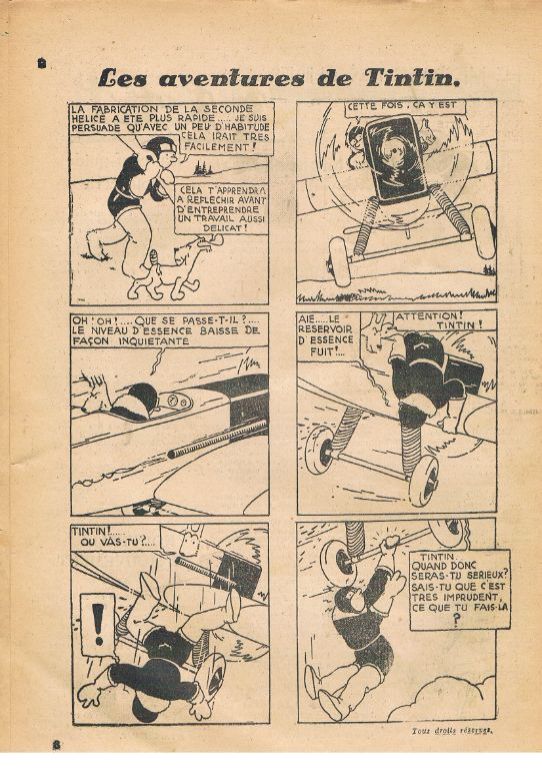 Met o.a. 2 pagina's Tintin au Congo en 2 pagina's Quick et Flupke. Allebei ongekleurd. Deze laatste geen strip maar 1 pagina met een tekening over de fabricage van een krant en de tweede pagina met allerlei uitleg en een tekening. ...