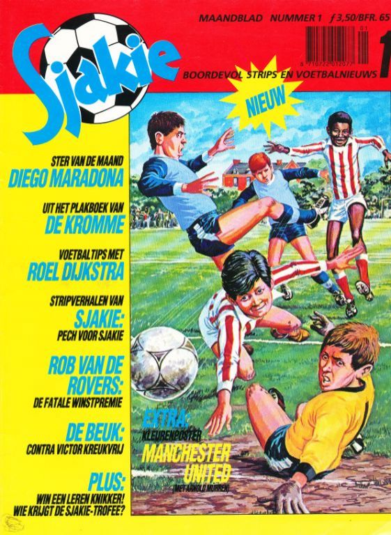 Sjakie nr 3 - maandbladBoordevol strips en voetbalnieuwsSter van de maand : doelman Harald SchumacherDe eerste nederlandse voetbalprofsMet 4 complete stripverhalen:Sjakie Rob van de Rovers De Beuk Jack en Jimmy en verder : Tips van ...