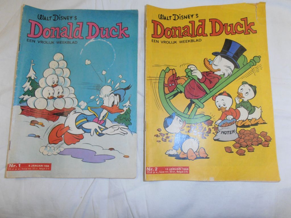 Aanwezig nr. 1 tot en met 10. Nr. 1: vrij goed. Nr. 2: Scheurtje voorkaft boven. Verder vrij goed. Nr. 3: perforaties linker marge, hoekje papier weg uit voorkaft rechtsonder, groot stuk papier weg uit achterkaft, scheurtjes pagina 9/10, 13/14 en 17/18. Nr. 4, 5 en 6: vrij goed. Nr. 7: perforaties, klein stukje papier weg van voorkaft, scheurtjes 9/10, 11/12, 17/18, 23/24, 25/26, 29/30, 31/32. Nr. 8: vrij goed. Nr. 9: krabbels op voorkaft. Nr. 10: klein scheurtje in rug onderaan, puzzel ingevuld. In praktisch alle boekjes: Tom Poes en de woelwater. Pippi Langkous, De Smurfen.