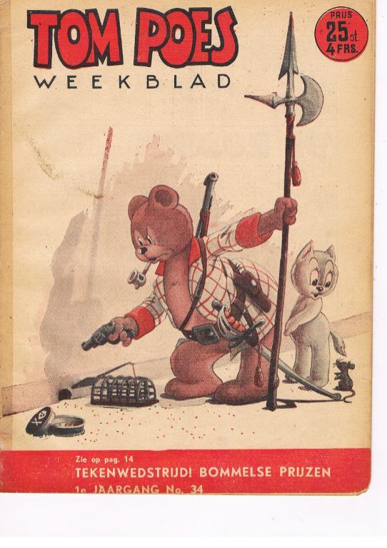 Dit nummer 34 heeft waarschijnlijk deel uitgemaakt van een bundeling en is later daarvan bevrijd. Ik zie nog sporen van de vroegere nietjes. Een vorige eigenaar heeft over de rug een smal strookje van een soort Magic tape geplakt. Het valt bijna niet op. Op pagina 09/10 onderaan een scheurtje van een paar mm, op pagina 1-2 van een cm en op de achterzijde onderaan bij de rug van 1,5 cm. Ik merk ook, dat het formaat ca. 1 cm korter is geworden. De hoekjes lijken iets minder strak. Het boekje ziet er zeer goed uit; redelijk strak en glad. Gewicht 29 gram. Verzendkosten vanaf € 3,95 (met track & trace). Prijs € 12,95.