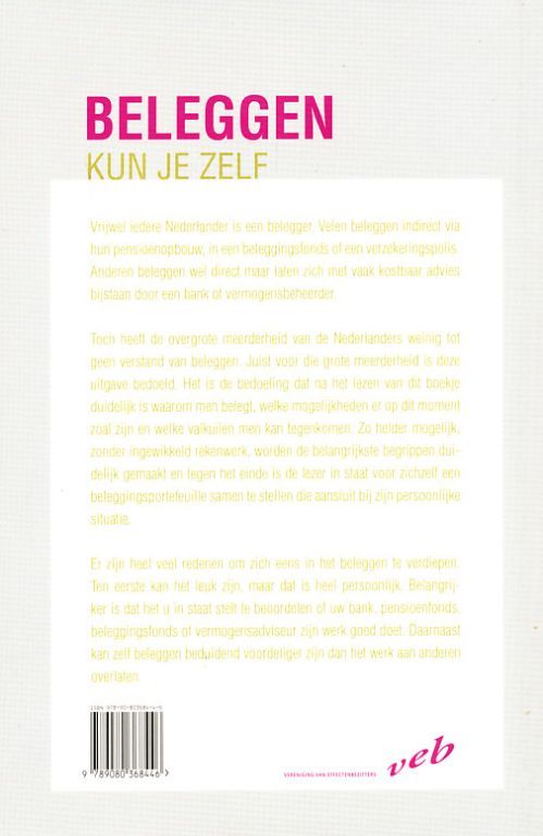 Het is de bedoeling dat na het lezen van dit boekje duidelijk is waarom men belegt, welke mogelijkheden er op dit moment zoal zijn en welke valkuilen men kan tegenkomen.