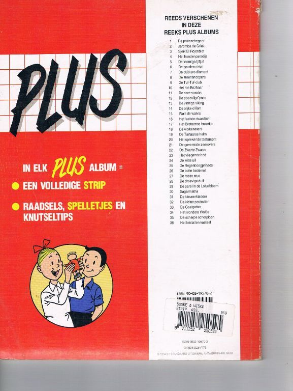Uitg. Standaard. Tweede Rode plus reeks nr. 31. 64 pagina's exclusief kaften. In tegenstelling tot andere nummers heeft men de achterzijde van de titelpagina blad 2 genoemd. Hierdoor tellen de kaften niet mee. Het verhaal stopte bij blad 56. De afdeling, die de spelletjes organiseerde, ging gewoontegetrouw verder met blad 59, zodat blad 57/58 ontbreekt. Hoewel de laatste pagina blad 66 vermeldt, zijn er in werkelijkheid dus maar 64 pagina's. 8 pagina's met spelletjes en wetenswaardigheden. Wat gebruikssporen o.a. gerepareerd stukje aan de rug bovenaan en enkele kleine kreukjes. Dikte 4 mm. Gewicht 167 gram. Verzendkosten vanaf € 3,95. Prijs € 2,50.