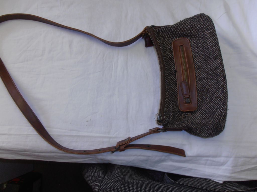 Formaat ca. 15 x 28 cm. Formaat bodem ca. 8 x 27 cm. Als ik naar de onderzijde kij, lijkt het, dat de tas wel eens is gebruikt. Binnenin een klein ritsvakje. De schouderriem is van kunstleer. M.i. een leuke tas met ruimte om wat op te bergen. Verzendkosten vanaf € 4,50. Prijs € 9,95.