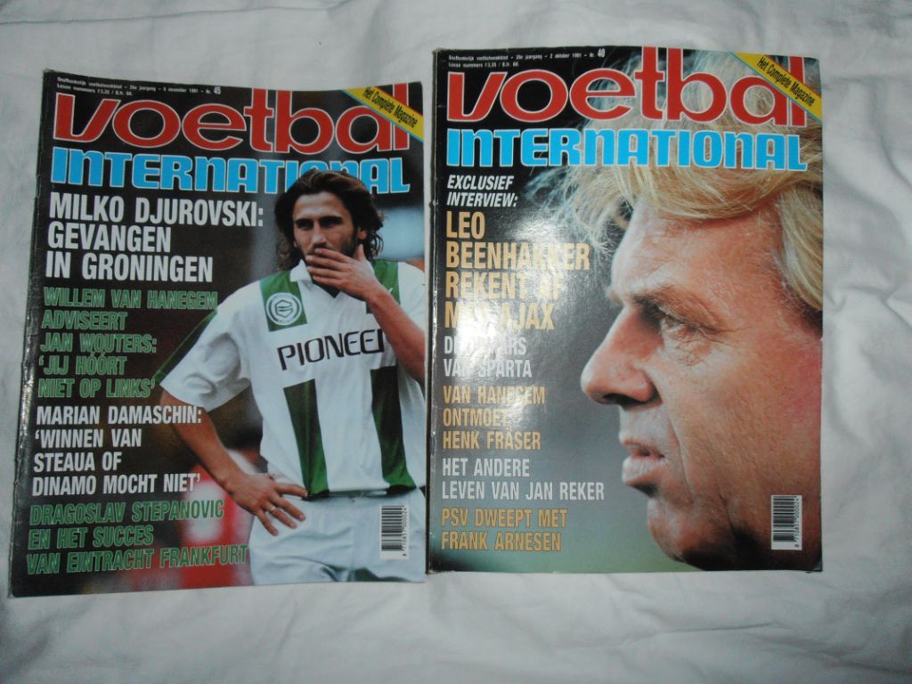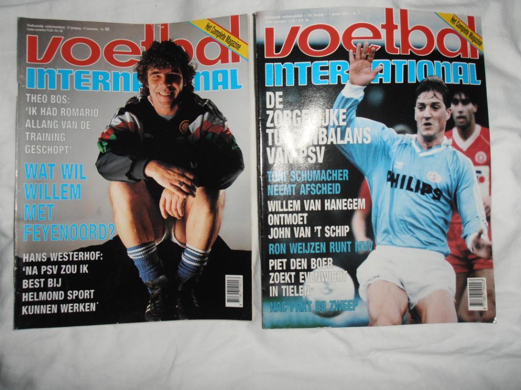 Geselecteerde onderwerpen uit: Voetbal International 1989 nr. 43 en 1995 nr. 11 en Sport International 1989 maart en 1996 januari, De bladen zijn in vrij goede staat. 1 x nieuwstaat en andere met lichte gebruikssporen. Voor deze collectie ...