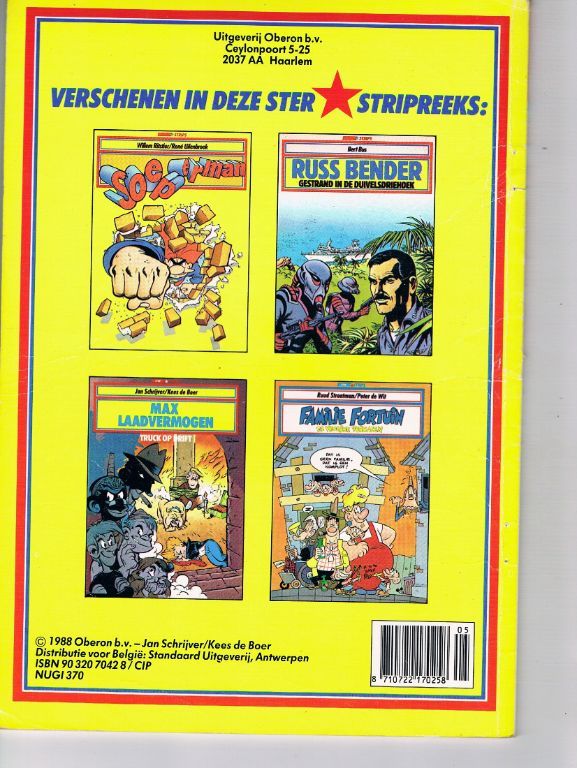 Uitg. Oberon. 1e druk 1983. Eppo sterstrip nr. 1. SC. 32 pagina's. Wat gebruikssporen; o.a. vouwtje op achterkaft onderaan en stukje missend papier van pagina 21/22 onderaan, waar juist de paginanummers staan. Verder vrij aardig. ...