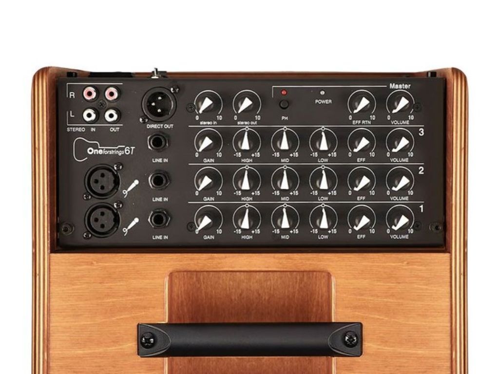 Versterker akoestische instrumenten ONE FOR STRINGS 6TC, 130W, 3 kanalen, reverb, naturel hout