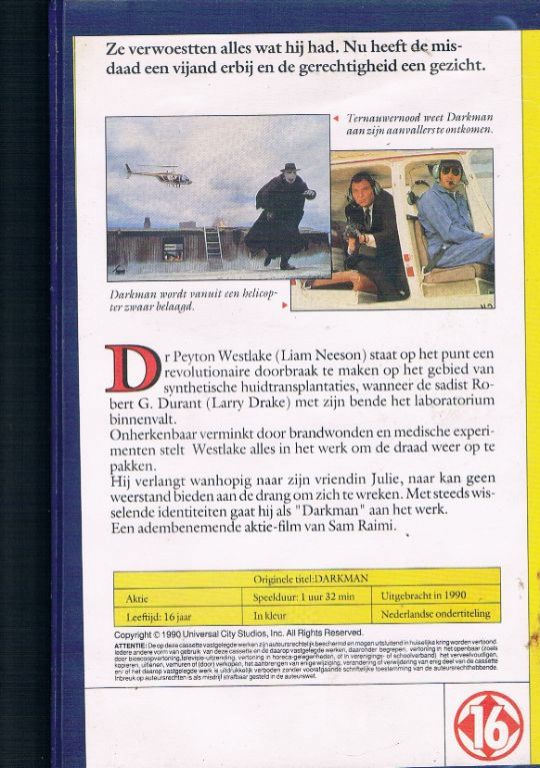 1990. Speelfilm. Speelduur 92 minuten. Nederlands ondertiteld. In zeer goede staat. Op de cassette stat een sticker Huurfilm. De vorige eigenaar heeft de cassette gekocht. Leeftijd 16 jaar. Verzendkosten vanaf € 4,50. Prijs € 3,95.