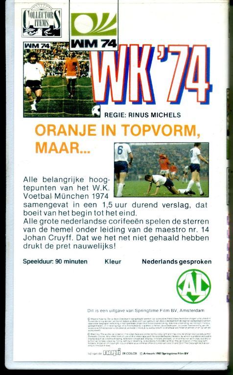 WK ’74 Oranje in topvorm maar... Alle belangrijke hoogtepunten van het WK voetbal München 1974 samengevat in een 1,5 uur durend verslag, dat boeit van het begin tot het eind.