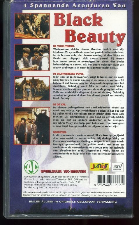 4 Spannende avonturen van Black Beauty 2 VHS banden mooie staat