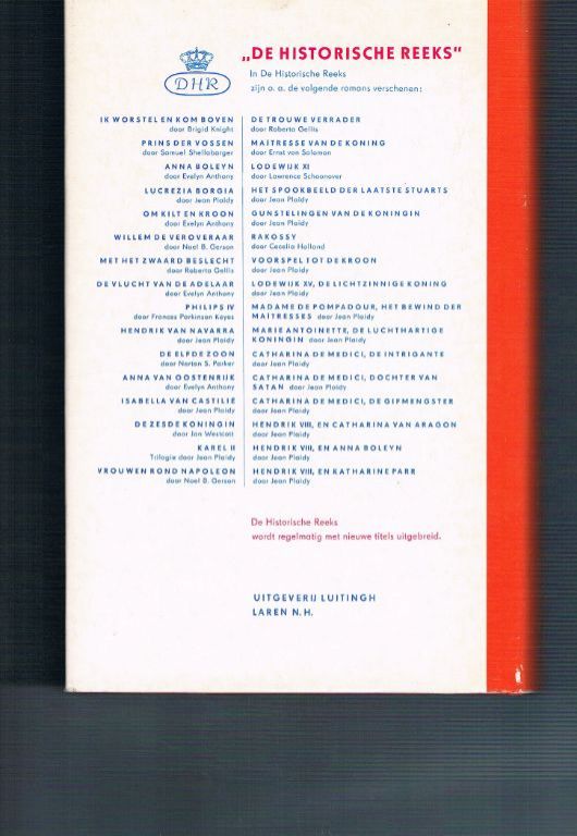 Door Jean Plaidy. Uitg. Luitingh. Geschat jaren '60. Gebonden met stofomslag. 396 pagina's. Dikte 4 cm. Gewicht 654 gram. Nieuwstaat. Verzendkosten vanaf € 5,45. Prijs € 12,95. Het leesseizoen is weer aangebroken. Daarom en nieuwe prijs van € 9,95.