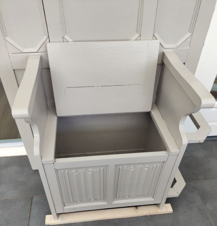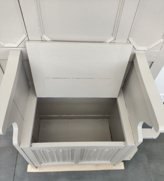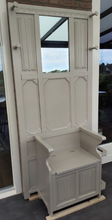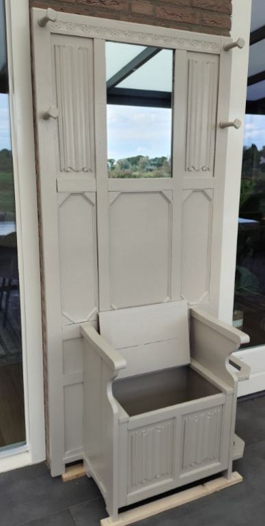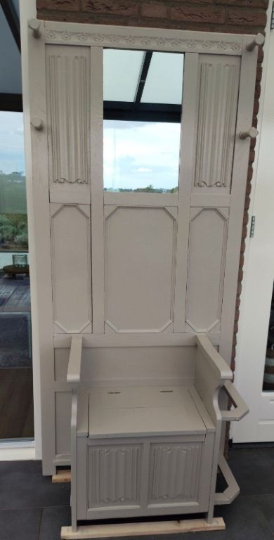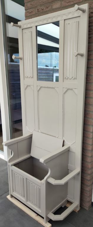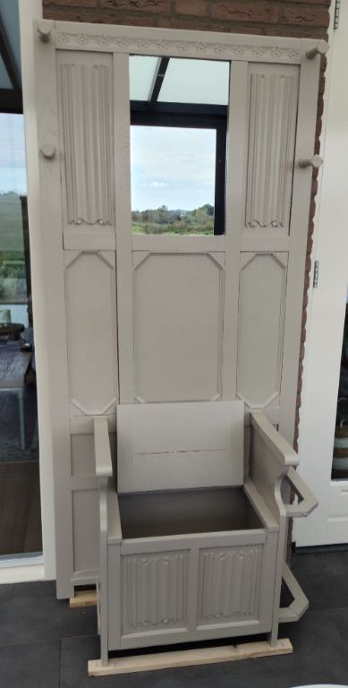 Halmeubel met opbergbankje. En kapstok